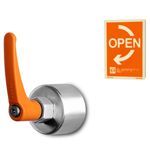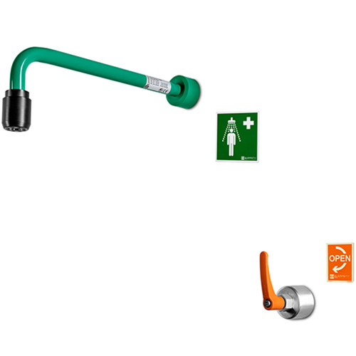 The integrated automatic flow regulator ensures a standard-compliant spray pattern regardless of the water pressure on site. With the enclosed safety sign according to EN ISO 7010 and ASR A1.3, the B-SAFETY emergency shower is marked and visibility is improved. The viewing distance is 15 meters.