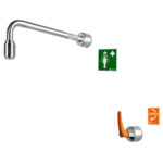Der integrierte automatische Mengenregulator sorgt für ein normgerechtes Strahlbild unabhängig vom vor Ort anstehenden Wasserdruck. Mit dem beiliegenden Hinweisschild gemäß DIN EN ISO 7010 und ASR A1.3 wird die B-SAFETY Notdusche gekennzeichnet und die Sichtbarkeit wird verbessert. Die Erkennungsweite beträgt 15 Meter.